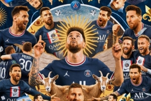 梅西达成职业生涯900球里程碑,法甲官方社媒晒出海报,对他表示祝贺,配文:“900球,The GOAT,梅西。”