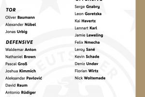 中前场:格纳布里(拜仁)、格雷茨卡(拜仁)、哈弗茨(阿森纳)、卡尔(拜仁)、勒威林(斯图加特)、恩梅查(多特)、萨内(加拉塔萨雷)、沙德(布伦特福德)、翁达夫(斯图加特)、维尔茨(利物浦)、沃尔特马德(纽卡)