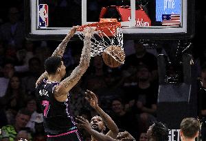 体育资讯3月9日讯 NBA常规赛,热火121-110击败活塞。赛后,阿德巴约接受了采访。