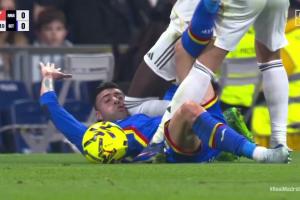 这一动作由于争抢的复杂性和区域内球员众多而被裁判忽略,VAR也未干预,认为这属于主观解释动作。对于CTA来说,这属于暴力行为,因为该皇马球员(吕迪格)用膝盖扑向倒地的对手,而没有争到球的机会。由于这是裁判未看到的突发事件,并构成明显、清晰、毋庸置疑的错判,VAR本应推荐在监视器上复审,并以暴力行为直接出示红牌。