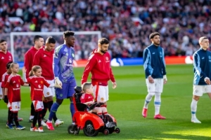 还有一位名叫博比·摩尔的男孩,来自贝尔法斯特,患有脊髓性肌萎缩症。他曾给曼联队长写信,B费把博比带到卡灵顿训练基地,并游说让他成为曼联首位坐轮椅的球童。去年四月曼彻斯特德比,他们一起携手入场。