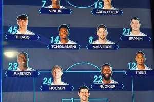 体育资讯03月12日讯 皇马官方公布了对阵曼城的首发,皇马tv给出的阵型是442,维尼修斯、居莱尔搭档锋线。