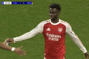 体育资讯03月12日讯 欧冠1/8决赛首回合,阿森纳客战勒沃库森,第60分钟,萨卡被换下场,马杜埃凯替补登场。