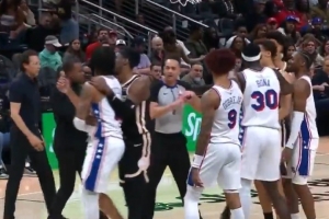 GIF-丹尼尔斯双手怒推沃特福德,差点冲突